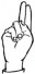 На ћирилици написано БЛАЖА ВУЛИЋЕВИЋ састоји се из 14 слова [?]. Исписано ћириличном једноручном азбуком за глувонеме: